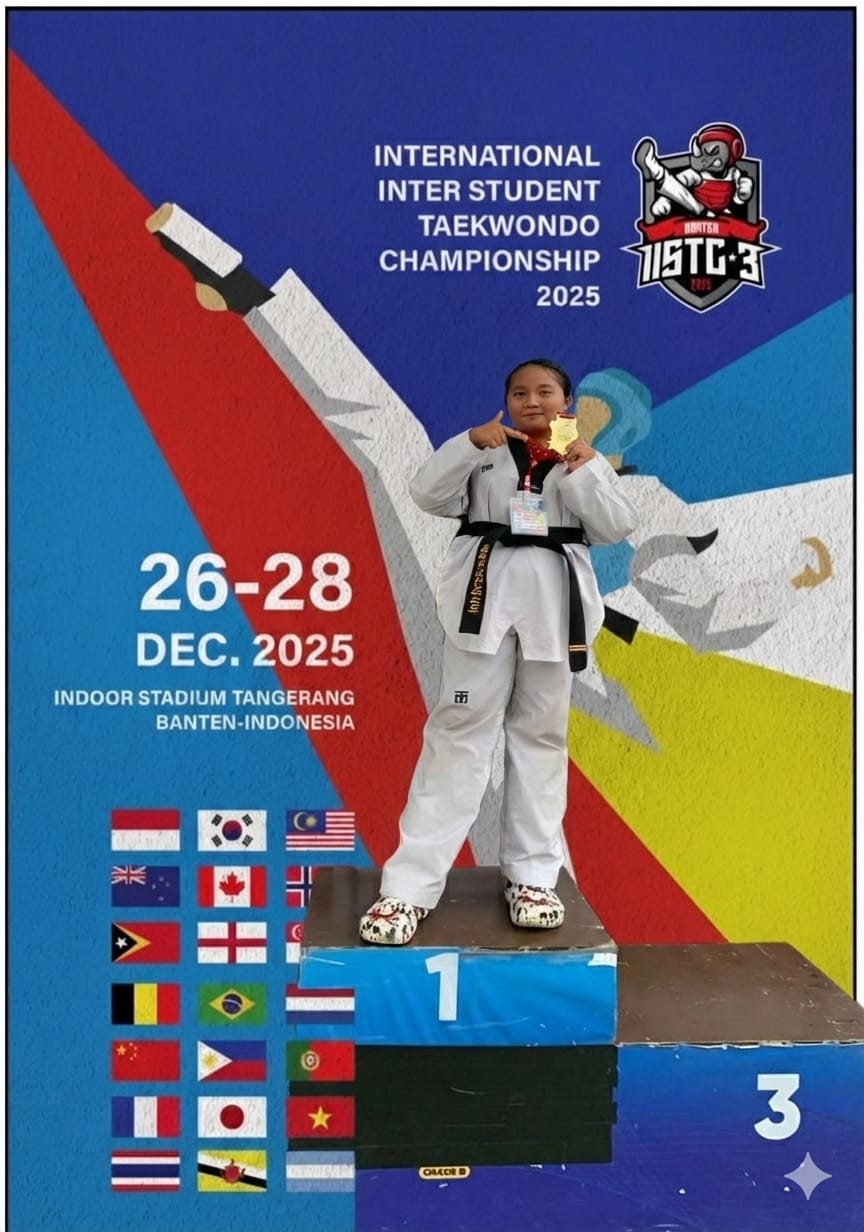 Lampung, Portal Nasional – Prestasi membanggakan kembali ditorehkan oleh Natasya Salsabila Hakim, pelajar asal Kota Metro, Provinsi Lampung yang berhasil meraih medali emas (Gold Medal) pada ajang International Inter Student Taekwondo Championship (IISTC) 3 tahun 2025.