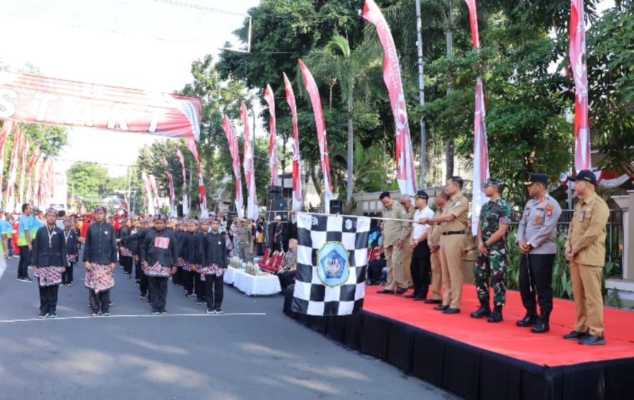 Lamongan, Portal Nasional – Pemerintah Kabupaten (Pemkab) Lamongan melaksanakan kegiatan Lomba Gerak Jalan tingkat SD/MI se-Kecamatan Lamongan dalam rangka memperingati Hari Ulang Tahun (HUT) Kemerdekaan Republik Indonesia ke-80, Selasa (19/8/2025).
